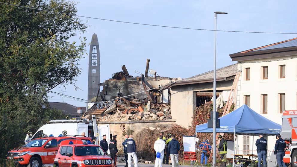 ヨーロッパイタリア北部の廃屋で爆発、軍兵士3人死亡、兄弟ら3人拘束、意図的に爆破か爆発は14日未明に発生。廃屋の立ち退き執行中に大きな爆発が起きた。 2025年10月14日/イタリア、北部ベローナ、爆発があった建物(A