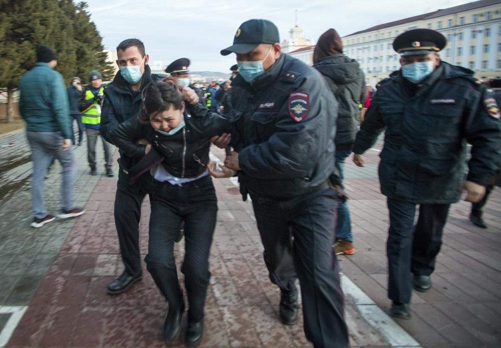 プーチン大統領の演説中、首都モスクワ、サンクトペテルブルク、ウラジオストク、イルクーツク、クラスヤルスクなどでは野党党首アレクセイ・ナワルニー氏の解放を呼びかける抗議活動が開催された。