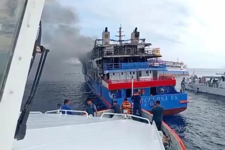 アジア太平洋インドネシアフェリー火災、575人救助、行方不明者の捜索続くこの事故は20日に発生。旅客フェリーで火災が発生し、3人が死亡した。 2025年7月20日/インドネシア、スラウェシ島沖、火事が発生し