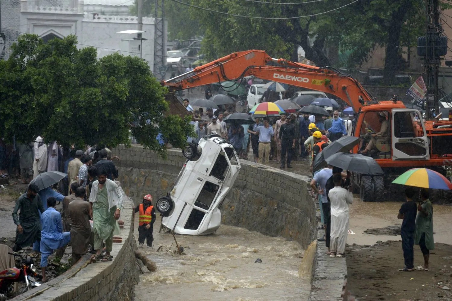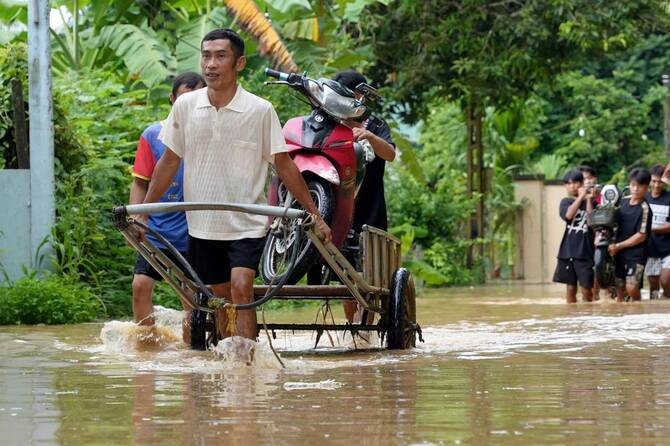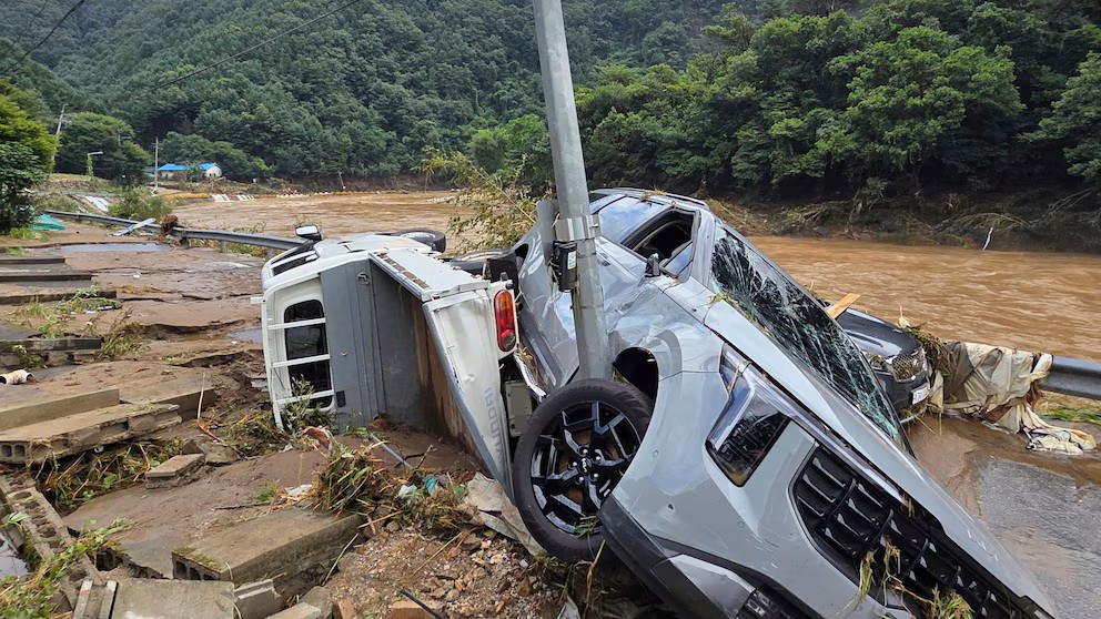 アジア太平洋韓国豪雨、全国で14人死亡、12人行方不明、3800人避難チュンチョン南道の5日間の雨量は多いところで800ミリに達した。 2025年7月20日/韓国、南部チュンチョン南道、洪水が発生した地区(