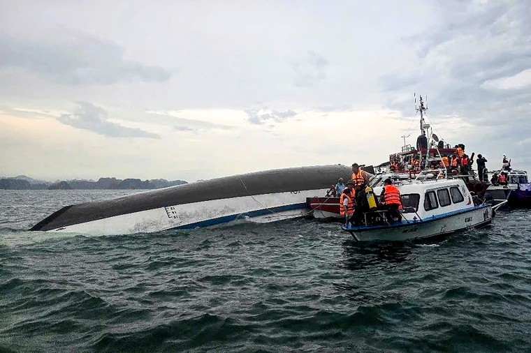 アジア太平洋ベトナム観光船転覆事故、34人死亡、8人行方不明 ハロン湾48人の乗客と5人の乗組員を乗せた「ワンダー・シー号」は19日午後に転覆。報道によると、乗客は全員ベトナム国籍であった。 2025年7