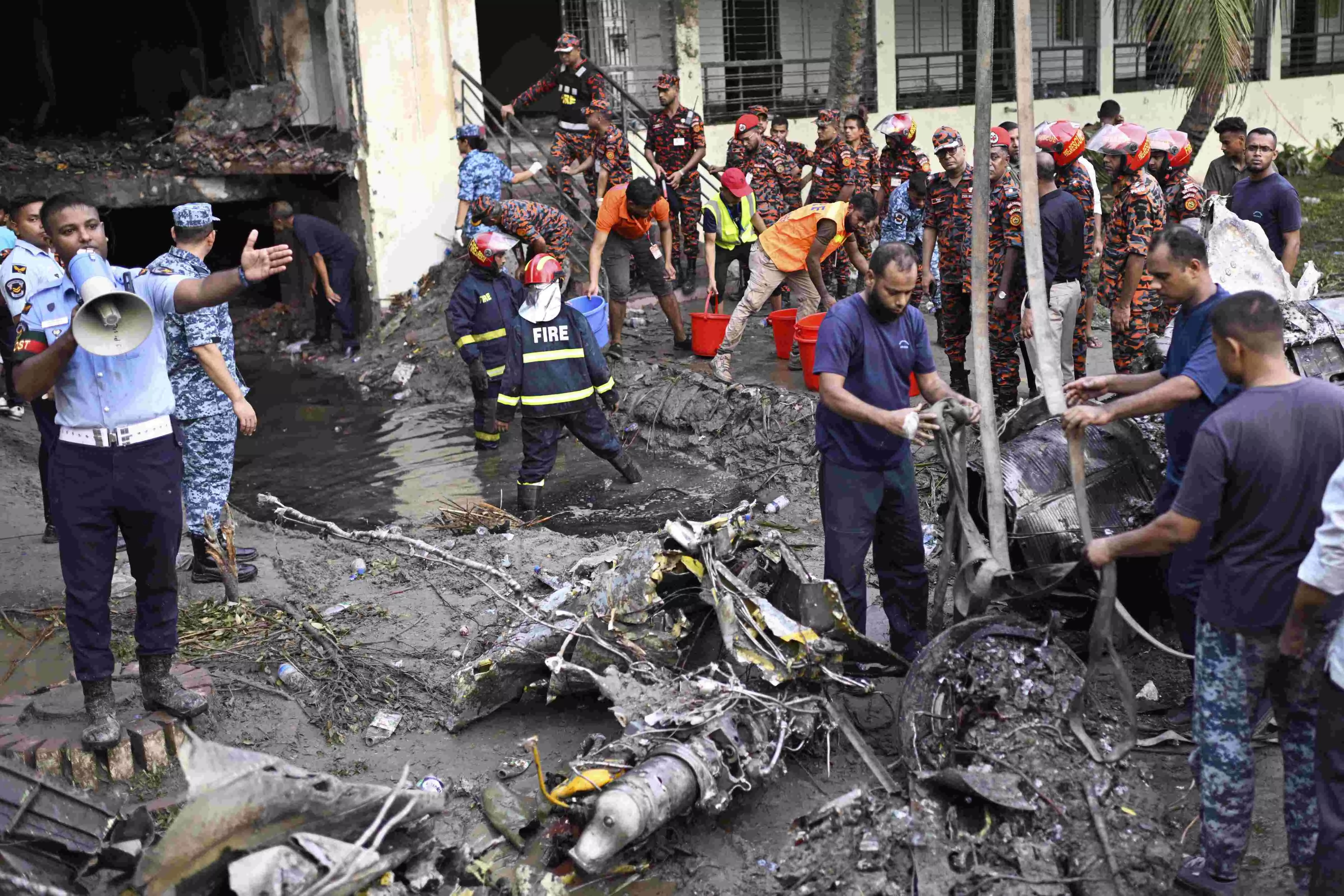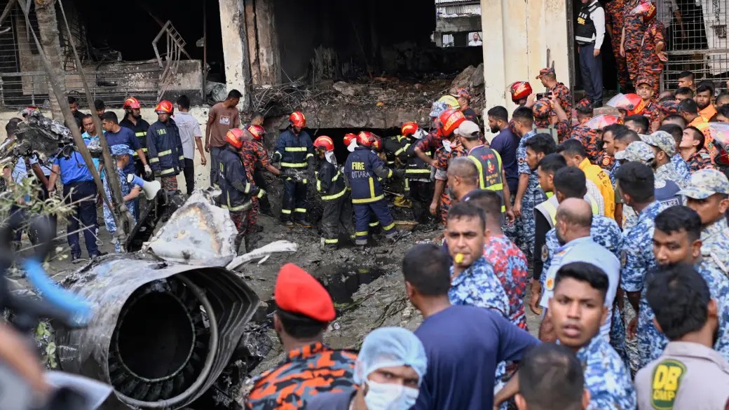 アジア太平洋空軍の訓練機が大学敷地に墜落、20人死亡、171人負傷 バングラデシュ訓練機は21日の午後1時過ぎ、ダッカ北部の国際空港近くにある大学敷地内の建屋に激突・大破した。 2025年7月21日/バングラデシュ、