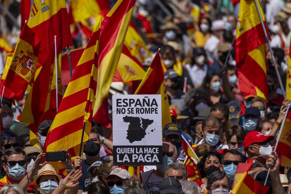 ヨーロッパスペインの右翼がカタルーニャの分離主義者への恩赦に反対する抗議集会を開催◎カタルーニャ州の独立への意欲は2017年に爆発し、スペイン政府はフランコ独裁政権以来の危機に直面した。 2021年6月13日/スペイン